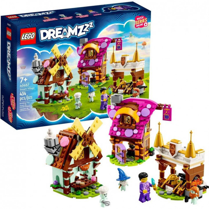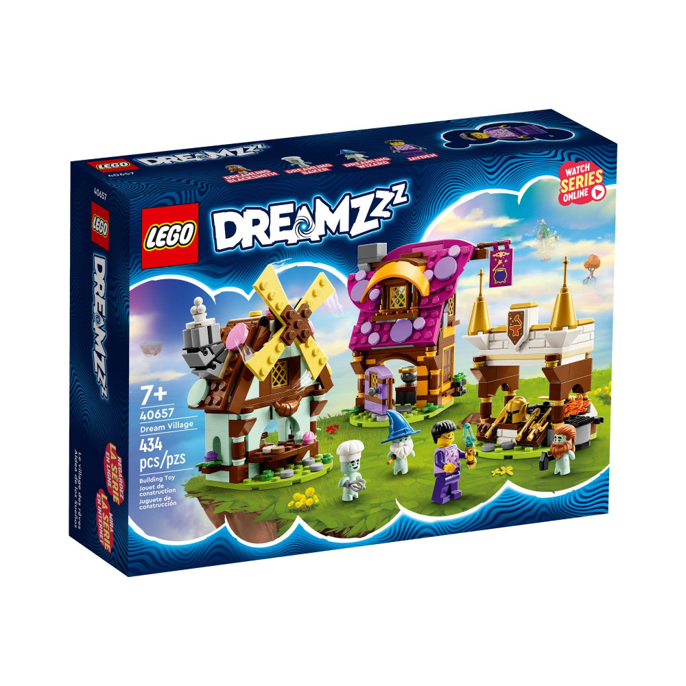 Dovoľte deťom od 7 rokov preskúmať magické prostredie z televízneho seriálu LEGO® DREAMZzz™ s touto napínavou stavebnicou Snová dedinka (40657). Dedinka je kúzelným miestom, ktoré hrdinovia často navštevujú počas spánku. Prebýva v plno snových bytostí a nájdete tam množstvo očarujúcich podnikov vrátane čarodejníckeho obchodu, pekárne a kováčskej dielne. Deti si môžu vybrať, či si zahrajú scénku s nakupovaním, alebo si pretvoria priložené moduly a vytvoria obrannú vežu pripravenú na útoky Škodliviek!