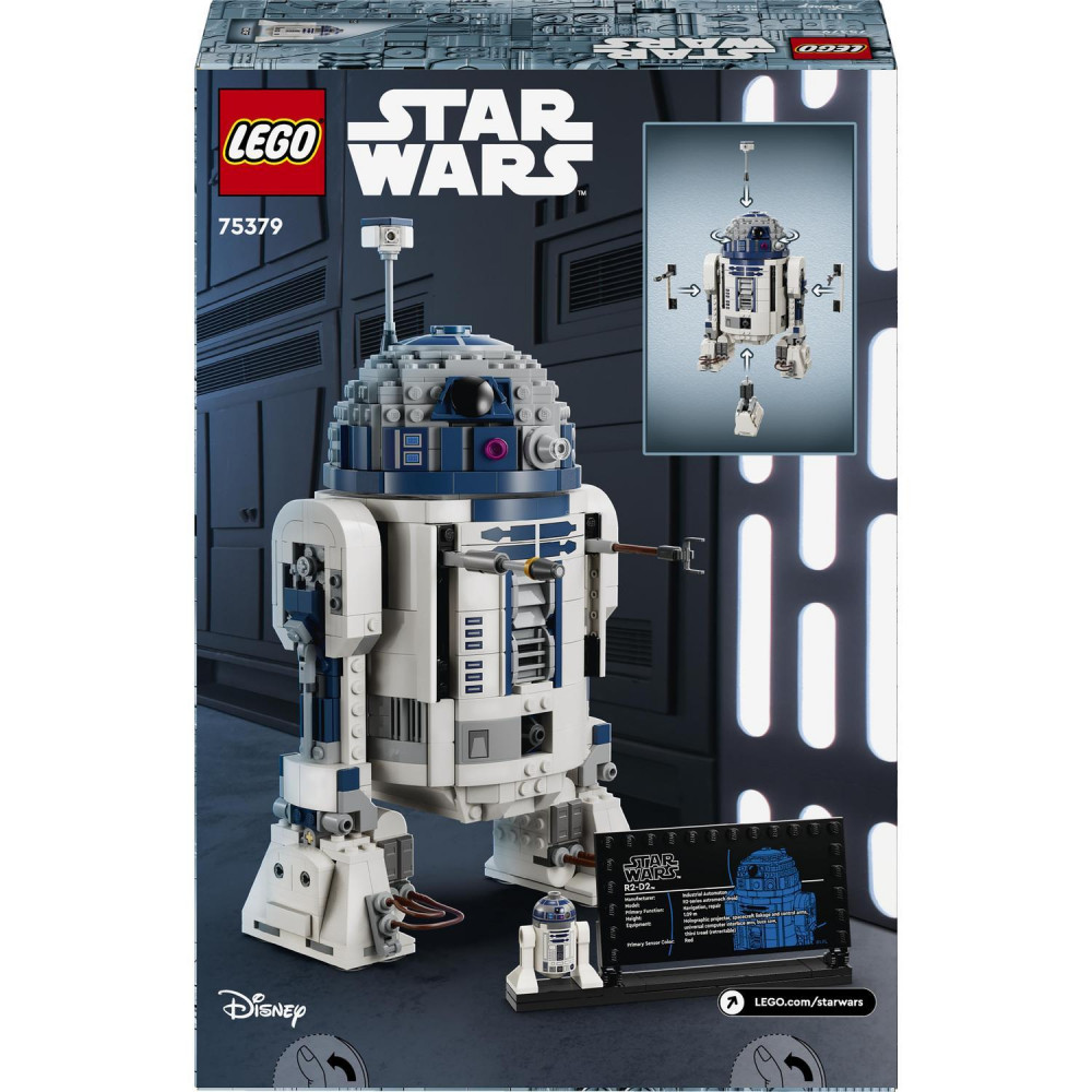 Doprajte deťom postaviť si svojho najmilovanejšieho droida z galaxie Star Wars™ s touto hračkárskou figúrkou R2-D2 (75379) z kociek LEGO®. Tento hravý zostaviteľný výstavný model pre chlapcov a dievčatá od 10 rokov je vybavený autentickými funkciami, takže deti si môžu zinscenovať legendárne momenty aj svoje vlastné fantastické príbehy. Medzi funkcie R2-D2 patrí rotujúca hlava o 360 stupňov, tretia pripojiteľná noha, pripojiteľný periskop a pripojiteľné nástroje.