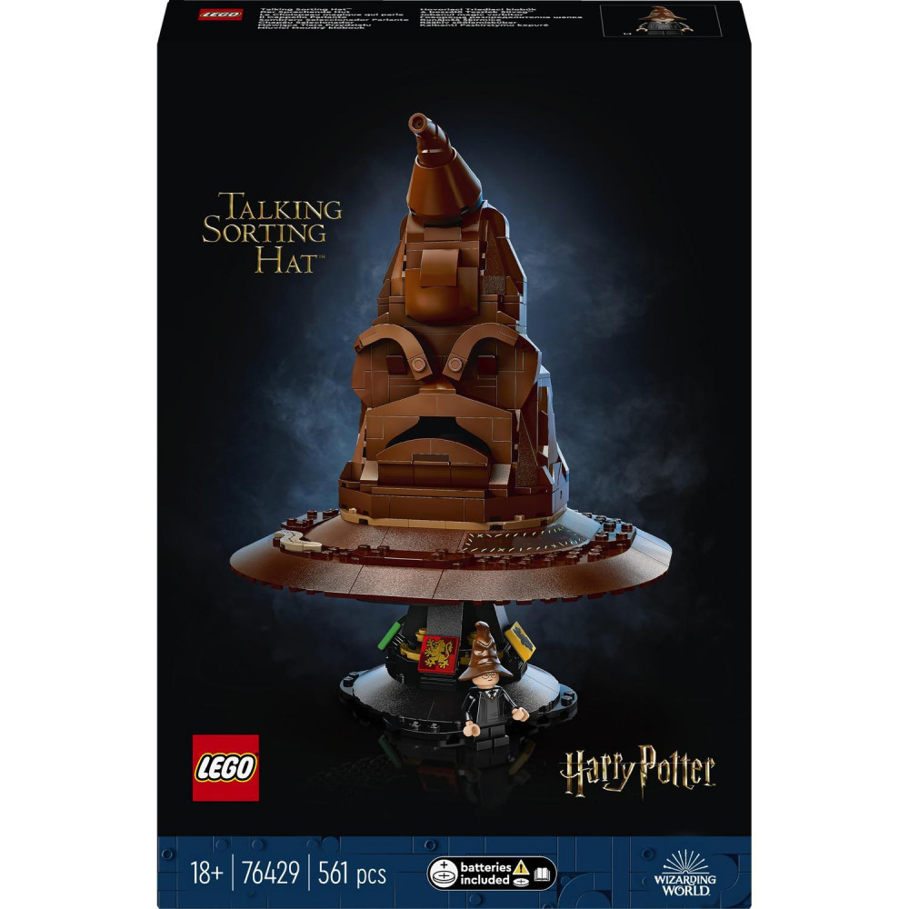 Ponorte sa do očarujúcej stavby s touto stavebnicou rokfortský Hovoriaci Triediaci klobúk (76429), vôbec prvou stavebnicou zo série LEGO® Harry Potter™, ktorá obsahuje zvukovú kocku, ktorá oživí celý výstavný model. Ohnite vrch klobúka alebo si hopoložte na hlavu, čím aktivujete jeho zvuk a klobúk začne rozprávať! Zistite, akú fakultu Rokfortu pre vás vyberie a z času načas si vypočujte aj pieseň o Triediacom klobúku.