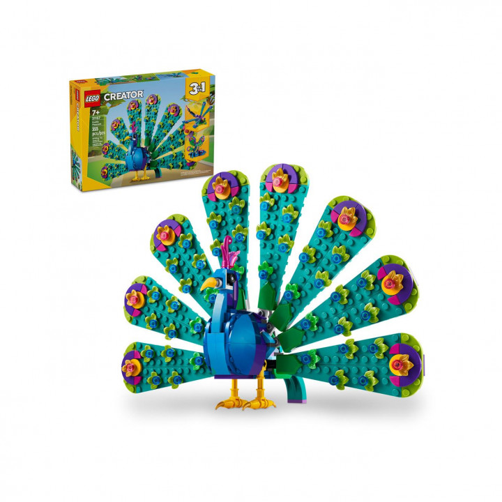 Chlapci a dievčatá od 7 rokov môžu stavať, hrať sa a vystavovať 3 rôzne hračky exotických zvierat LEGO® s touto pôsobivou stavebnicou Creator 3 v 1 Exotický páv (31157). Model obsahuje hračkárskeho páva s krásnym prepracovaným perím, ktoré môžete zložiť alebo hrdo rozprestrieť.