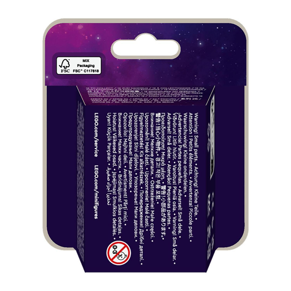V každom balení s prekvapením nájdete 1 vesmírnu minifigúrku a spolu si ich môžete zozbierať až 12: mutant Blacktron, prieskumníčka ľadovej planéty, podvodník, robotický komorník, mimozemšťan Beetlezoid, retro vesmírna hrdinka, android sestrička, fanúšik v kostýme lietajúceho taniera, powerliftér M-Tron, mimozemšťan turista, Orion a astronaut na prechádzke vesmírom.