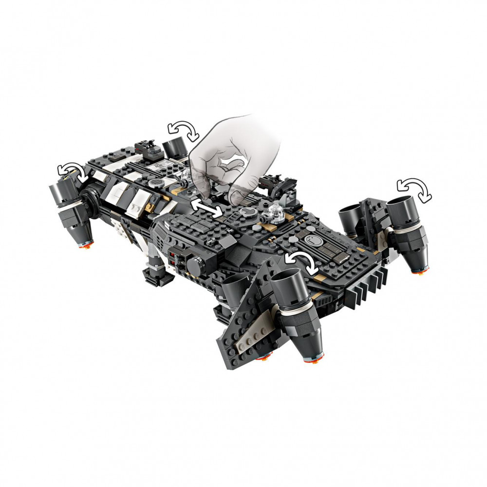 Deti sa stanú hrdinami svojich vlastných príbehovStar Wars: Skeleton Crew s prepracovanou verziou lodeOnyx Cinder (75374) z kociek LEGO®. Táto zberateľská LEGO Star Wars™ zostaviteľná hračkárska hviezdna loď obsahuje rotujúce motory na pristávanie/vzlietanie alebo let, 2 vystreľovače projektilov, 2 rotujúce palubné veže s dvomi vystreľovačmi projektilov a pevný drapák. V lodi sú sedadlá pre všetkých 5 priložených postávLEGO Star Wars (minifigúrka LEGO Jod v kokpite a Wim, Fern, KB a Neel na palube pasažierov), plus úložný priestor pre 4 zostaviteľné baterky a ďalší náklad. Nájdete tu aj kuchynský stôl a posteľ, plus doplnky vrátane ovocia a vysielačky, ktoré inšpirujúkreatívnu hru.