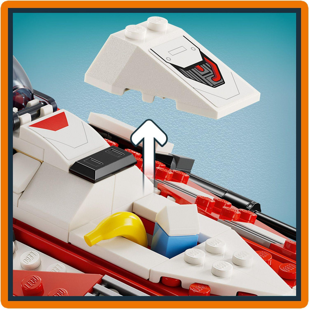 Zoznámte deti s obľúbenou tajomnou postavou zo stavebnice LEGO® Star Wars™ z roku 2002 s týmto modelom Stíhačka Jedi Boba (75388). Túto štýlovú stavebnicu LEGO Star Wars môžete darovať chlapcom, dievčatám a fanúšikom od 8 rokov k narodeninám a obsahuje hviezdnu stíhačku s otváracím kokpitom, 2 pružinovými vystreľovačmi a zasúvateľným podvozkom. Zahrajte sa na vzrušujúce dobrodružstvá s 2 minifigúrkami LEGOStar Wars: Jedi Bobom a vojakom Ackbarom, ako aj so LEGO figúrkou LEGO droida Serva (SR-V0), ktorého poznáte zo špeciálu LEGO Star Wars: Rebuild the Galaxy od Disney+. Medzi zábavné doplnky patrí svetelný meč Jedi Boba, ktorý možno pripnúť na základňu hviezdnej lode z kociek, ako aj kartón modrého mlieka a banány, ktoré môžete uložiť do úložného priestoru.