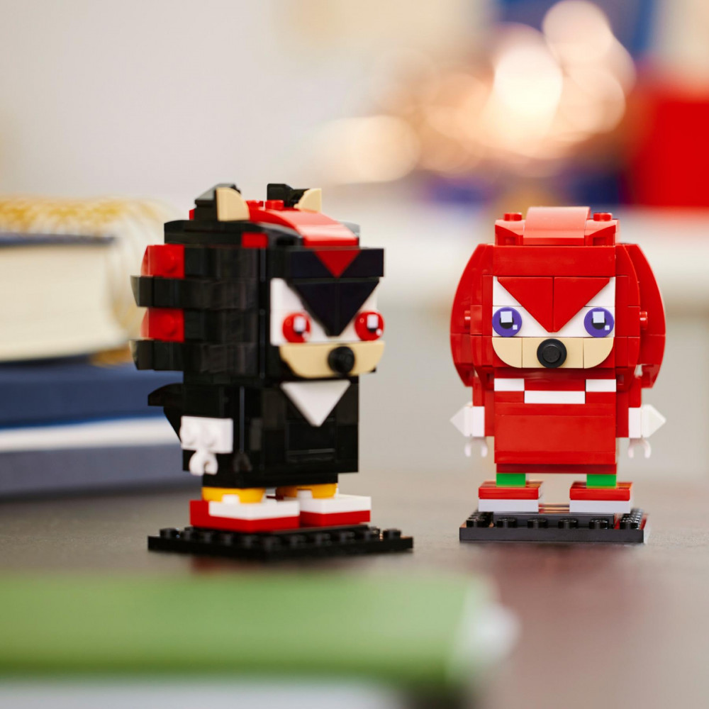 - Dva zostaviteľné modely BrickHeadz™ – Obe postavičky sú plné autentických detailov vrátane kruhov Limiter Shadowa a ostnatých pästí Knucklesa