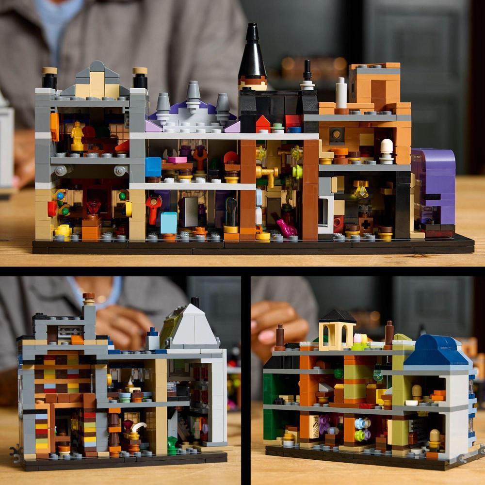 - Miniatúrne obchody v Šikmej uličke – Postavte si mikro verzie kultových obchodov vrátane Obchodu Sovy každého druhu, Gringottovej banky, Deravého kotlíka, novinovej redakcie Denný prorok a Rytierskeho autobusu