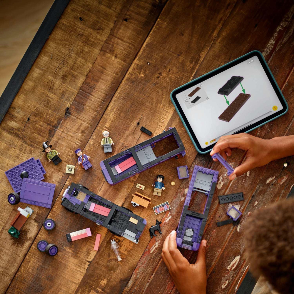 Táto čarovná stavebnica obsahuje aj 5 postáv LEGO Harry Potter – Harryho Pottera, Ernieho Pranga, Stana Shunpikea, spiacu čarodejnicu a Tichošľapa – s ktorými si môžete pripomenúť nezabudnuteľné scény z filmu Harry Potter a väzeň z Azkabanu™. Medzi ďalšie autentické detaily patrí lampový stĺp,pri ktorom Harry čakal (a kde ho Tichošľap vystrašil!), kým dorazí Rytiersky autobus, Harryho kufor a noviny Denný prorok s titulkom „Útek z Azkabanu“, ktoré vám dodajú ešte viac možností na hry na postavy.