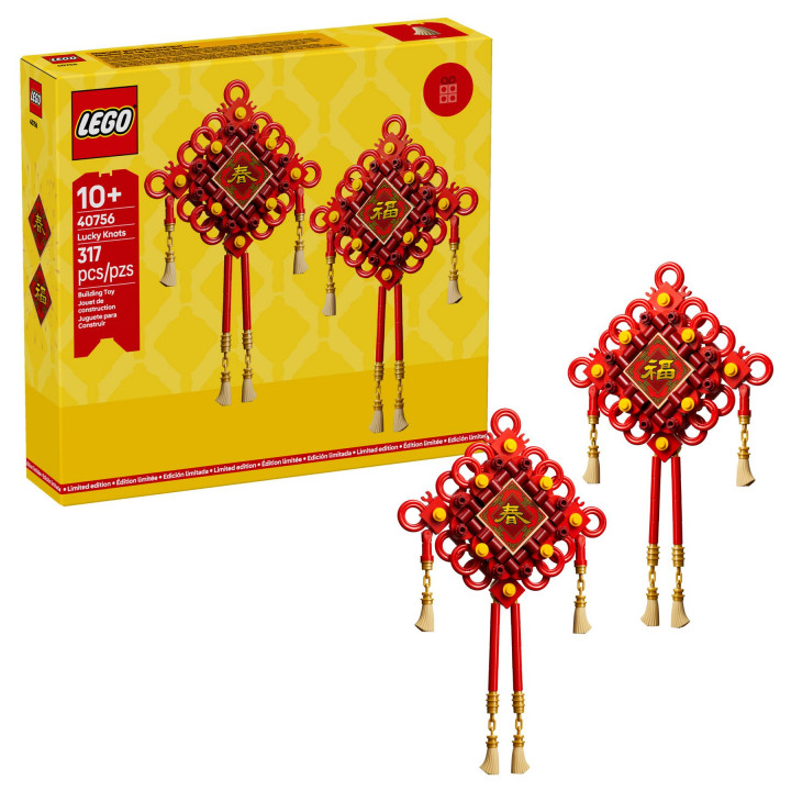 Oslávte Sviatky jari s touto čínskou dekoráciou Uzly šťastia (40756). Tento zostaviteľný pár ozdobených červených uzlíkov je tradičným príveskom pre šťastie, ktorým môžete popriať blaho a radosť všetkým ľuďom, ktorí vstúpia do domu v tomto sviatočnom období. Ideálna tvorivá aktivita pre celú rodinu!