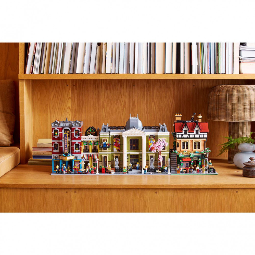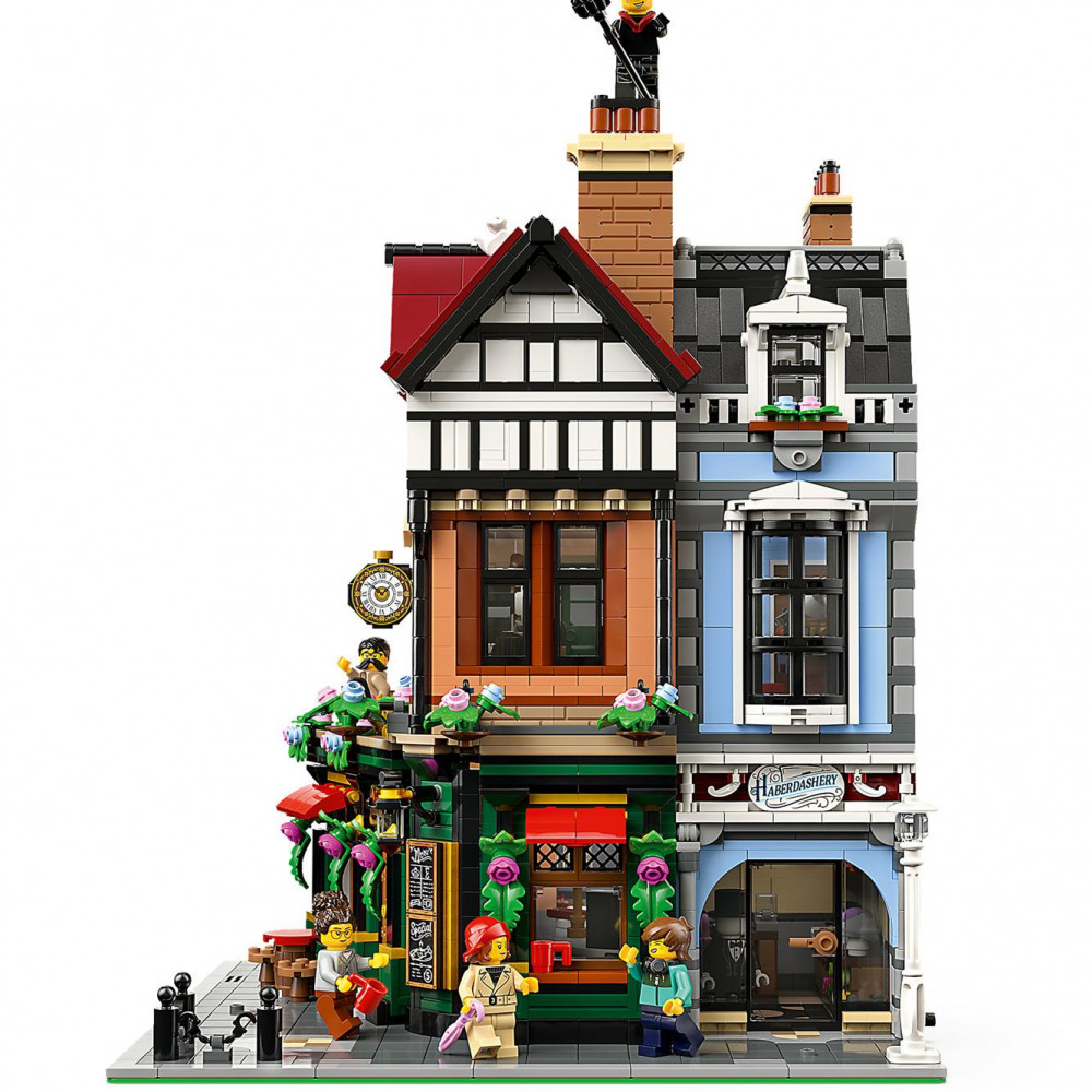 Medzi prvky domu patria 3 fasády v tehlovom a drevenom štýle, rôzne okná, vonkajšie schody a strmo šikmá červená strecha s rustikálnymi komínmi. V interiéri zasa nájdete reštauráciu s pultom, stoličkami a stolom; galantériu plnú klobúkov a dáždnikov; dielňu hodinára s budíkmi a starožitnými hodinami a útulný podkrovný byt. Táto ozdobná stavebnica bude vyzerať výborne v kancelárii či u vás doma a obsahuje 8 minifigúrok. Modulárny dizajn domu vám umožní zmeniť usporiadanie jeho miestností a ponúka vám nekonečné možnosti vystavenia a vymýšľania príbehov.
