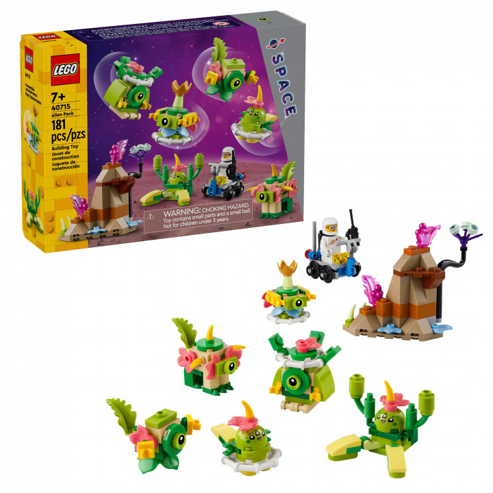 Rozprúďte fantáziu s touto stavebnicou LEGO® Skupinka mimozemšťanov (40715), vesmírnou hračkou ako z iného sveta pre nádejných astronautov od 7 rokov. Stavebnica plná galaktického herného potenciálu obsahuje šesť postavičiek mimozemšťanov, jednu minifigúrku LEGO a parádne vesmírne vozidlo. Milovníci vesmíru sa môžu skamarátiť s mimozemšťanmi, ktorí majú nové dieliky s očami a tvárou, a potom objaviť ďalšie úžasné doplnky. Vďaka vysielačke, kyslíkovej nádrži a ďalším prvkom sa intergalaktické dobrodružstvo nemusí nikdy skončiť.