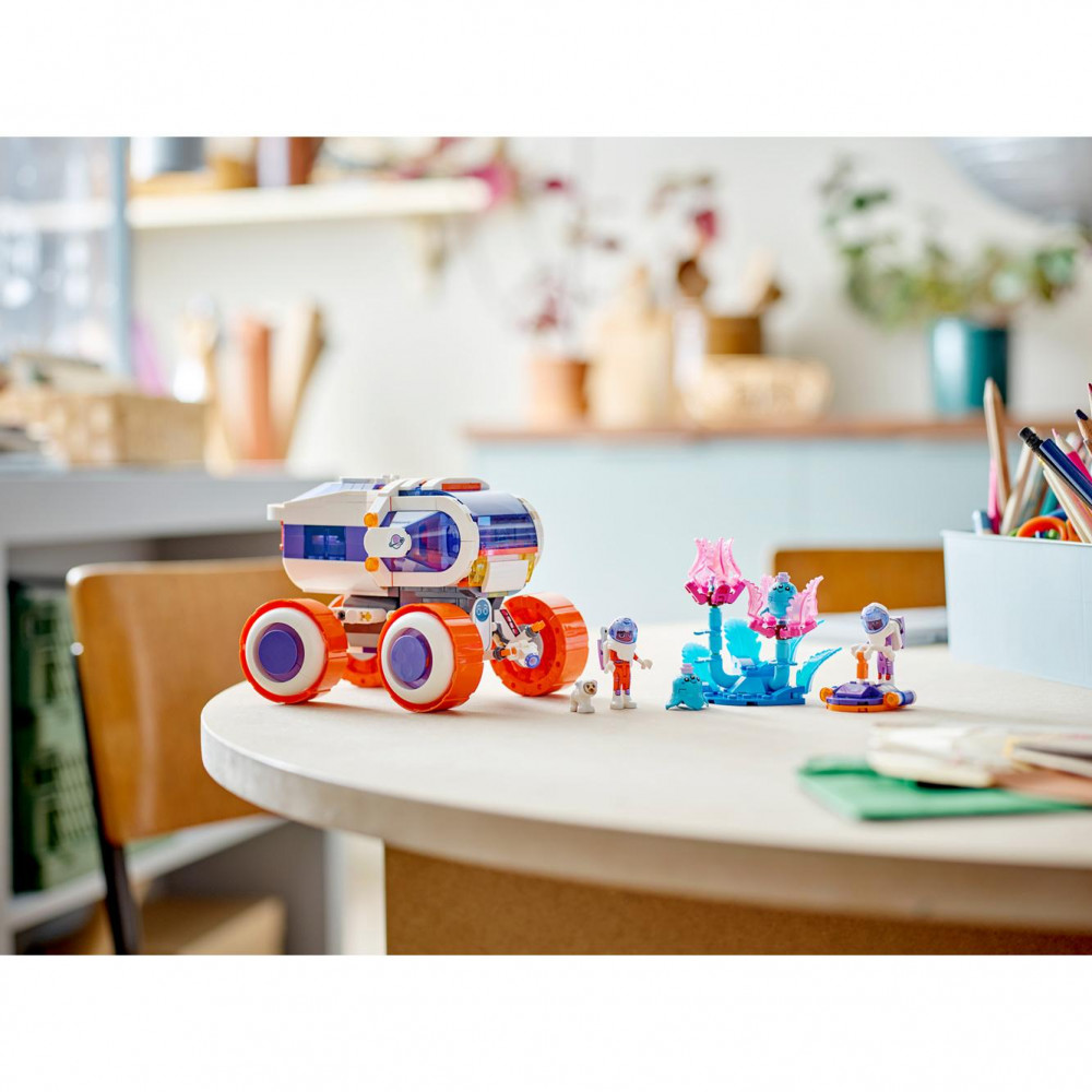 Toto hračkárske vozidlo pre dievčatá a chlapcov od 8 rokov im umožní vytvoriť si vlastné príbehy s mimozemšťanmi pre 2 kamarátov a ich psa astronauta. Hračkárske LEGO® Friends Prieskumné vesmírne vozidlo (42602) rozpráva príbeh Olivie a Williama, ktorí skúmajú neprebádanú planétu. Pátrajú po známkach mimozemského života a ich hračkársky rover s kolieskami má všetko, čo potrebujú, vrátane hračkárskeho vedeckého laboratória a kolobežky.