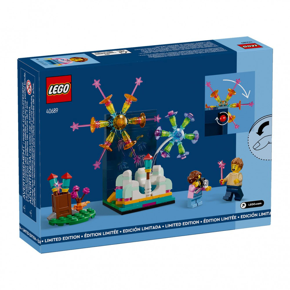 Sledujte, ako sa deti od 7 rokov budú tešiť zo stavania tejto stavebnice LEGO® Oslavy s ohňostrojom (40689), ktorá poslúži ako výborný darček. Model odráža čaro skutočných ohňostrojov – farebnú scenériu, otáčajúci sa ohňostroj a raketu, ktorá vyletí do vzduchu zo zeme. Minifigúrky dospelej osoby a dieťaťa s fotoaparátom a prskavkami oživia celý model. Uistite sa však, že obaja stoja v bezpečnej vzdialenosti od ohňostroja, kým obdivujú farby na oblohe!