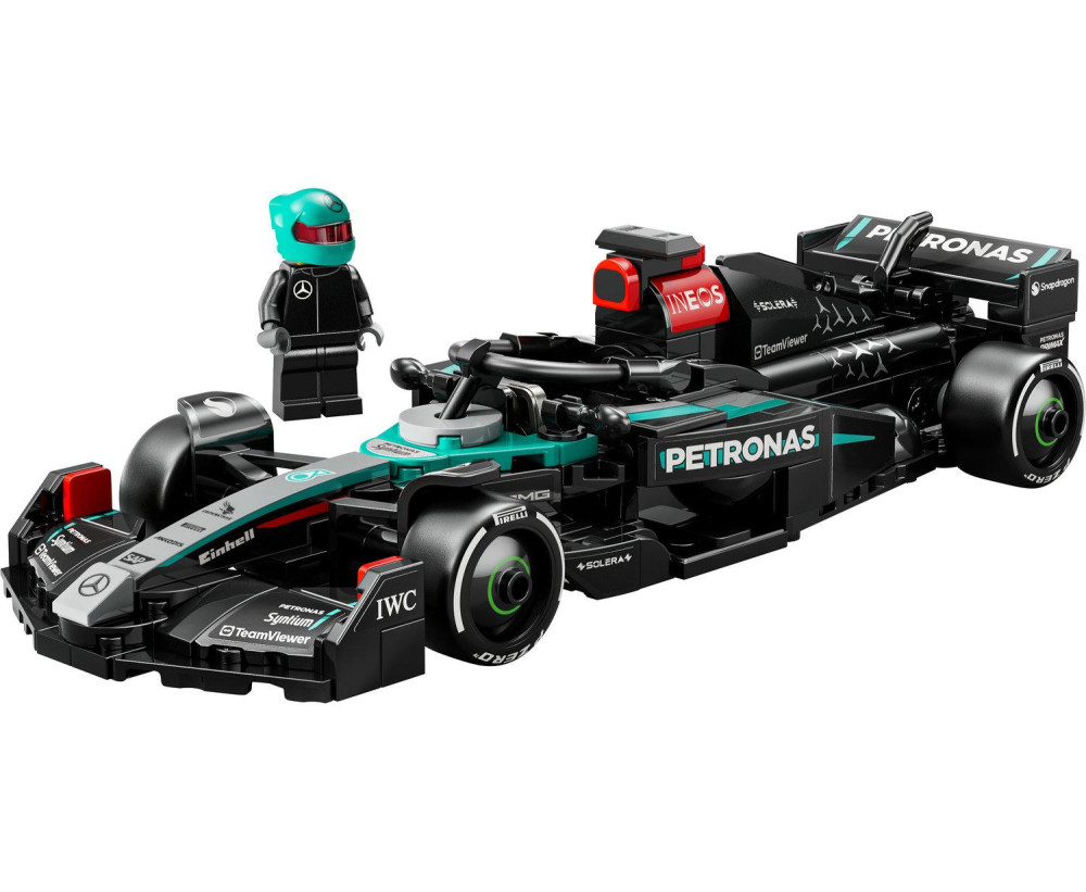 Tento model auta F1 má kokpit, ktorý otvoríte zdvihnutím bezpečnostnej tyče halo, zadné krídlo, priečne trojuholníkové rameno na zavesenie kolies, nálepky sponzorov a široké zadné pneumatiky s nápisom „Pirelli“. Tento zostaviteľný model obsahuje aj minifigúrku šoféra v uniforme Mercedes-AMG PETRONAS F1 Team a okrídlenej prilbe, ktorého môžete umiestniť do kokpitu a zinscenovať si preteky.