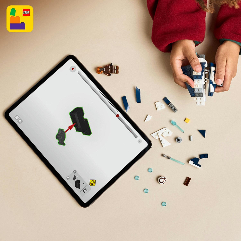 Táto fantasy stavebnica obsahuje aj minifigúrku LEGO Plo Koona s modrým svetelným mečom, ktorý môžete pripnúť na spodok mikrostíhačky. V modeli nájdete aj prvok hlavy droida R7-D4, ktorú môžete pripnúť na trup stíhačky pred kokpit, aby to vyzeralo, že tento verný droid Star Wars je druhým pilotom na misiách Plo Koona.