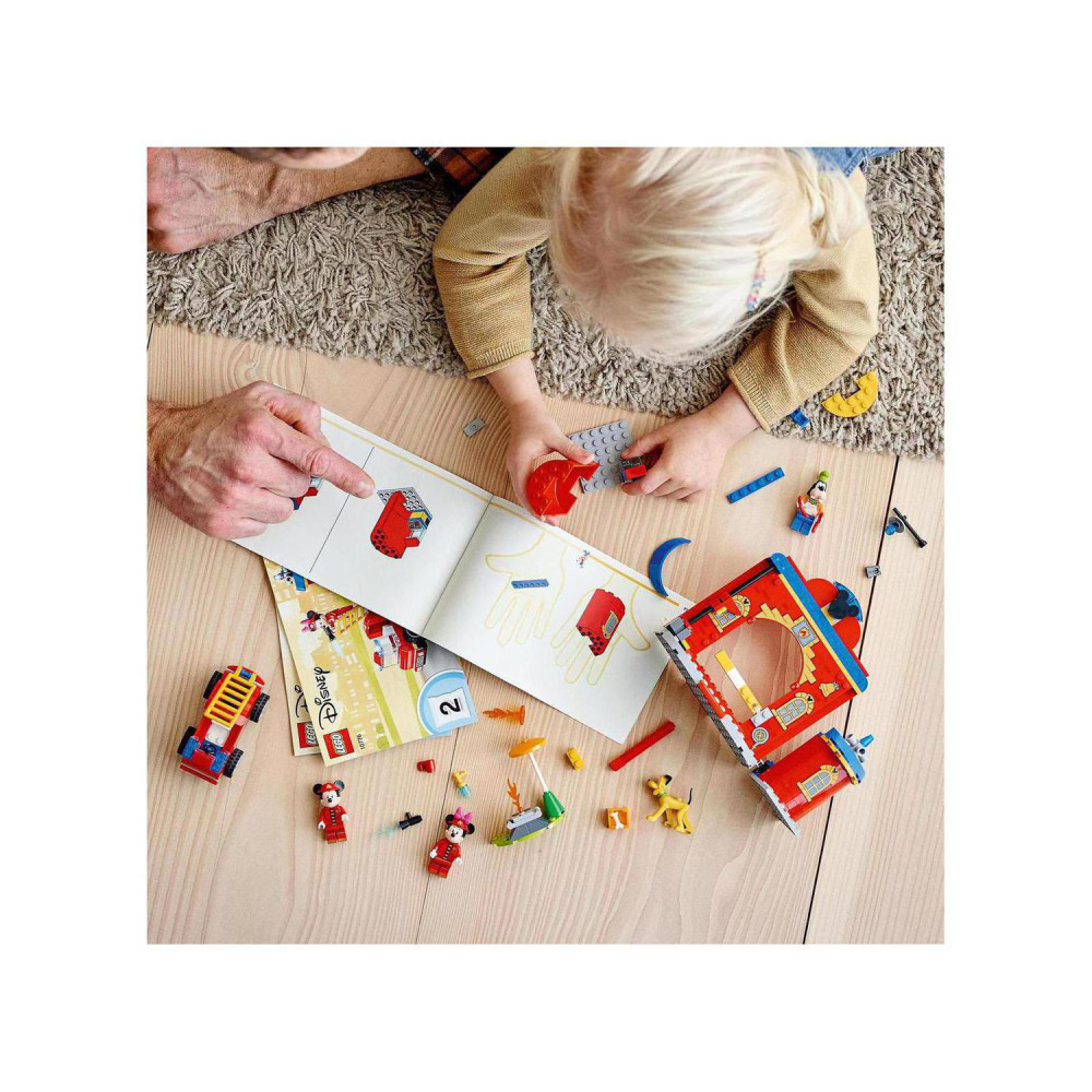 Zlepšite staviteľské schopnosti detí s touto stavebnicou LEGO® | Disney Mickey a priatelia : Hasičská stanica a auto Mickeyho a jeho priateľov (10776). Táto detailná stavebnica je ideálna na pre deti vo veku od 4 rokov, ktoré môžu s Myšiakom Mickeym od Disneyho a jeho priateľmi prežiť napínavé chvíle pri hasení požiarov.