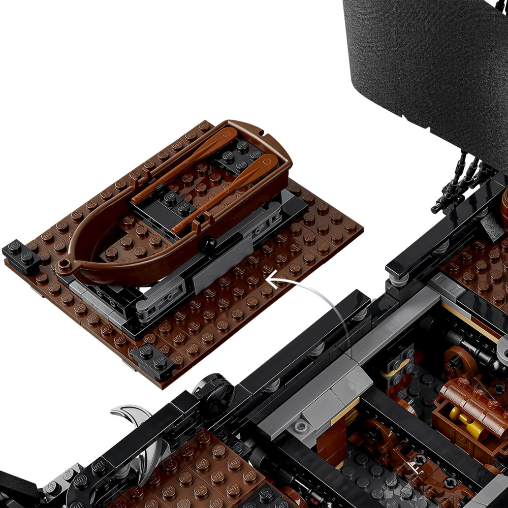 Táto filmová replika zachytáva pirátsku loď v celej svojej kráse. Otočením ovládača odpáľte ľavé alebo pravé kanóny, riaďte kormidlo lode a otvorte palubu, pod ktorou nájdete kapitánovu kajutu s nábytkom, svietnikmi a jablkom. Medzi ďalšie prvky patrí odpojiteľný čln, minifigúrka galiónovej figúry a podstavec na vystavenie v naklonenej podobe. Prípadne môžete trup lode rozdeliť podľa čiary ponoru, aby to vyzeralo, že pláva.