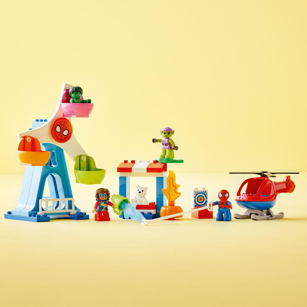 Superhrdinovia od 2 rokov môžu so stavebnicou LEGO® DUPLO® Marvel Spider-Man a kamaráti: Dobrodružstvo v lunaparku (10963) objavovať rôzne praktické aktivity a vymýšľať tvorivé príbehy s postavami.