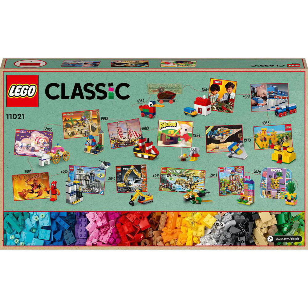 Deti, dospelí a starí rodičia môžu zažiť dlhé hodiny zábavy a nostalgie so stavebnicou LEGO® Classic 90 rokov hier (11021). Tento set je oslavou tvorivých hračiek pre deti s dlhoročnou históriou a obsahuje dieliky LEGO vo všetkých farbách dúhy, 15 miniatúrnych verzií ikonických modelov LEGO v priebehu rokov a tiež dodatočné vrecúška kociek na slobodné stavanie!