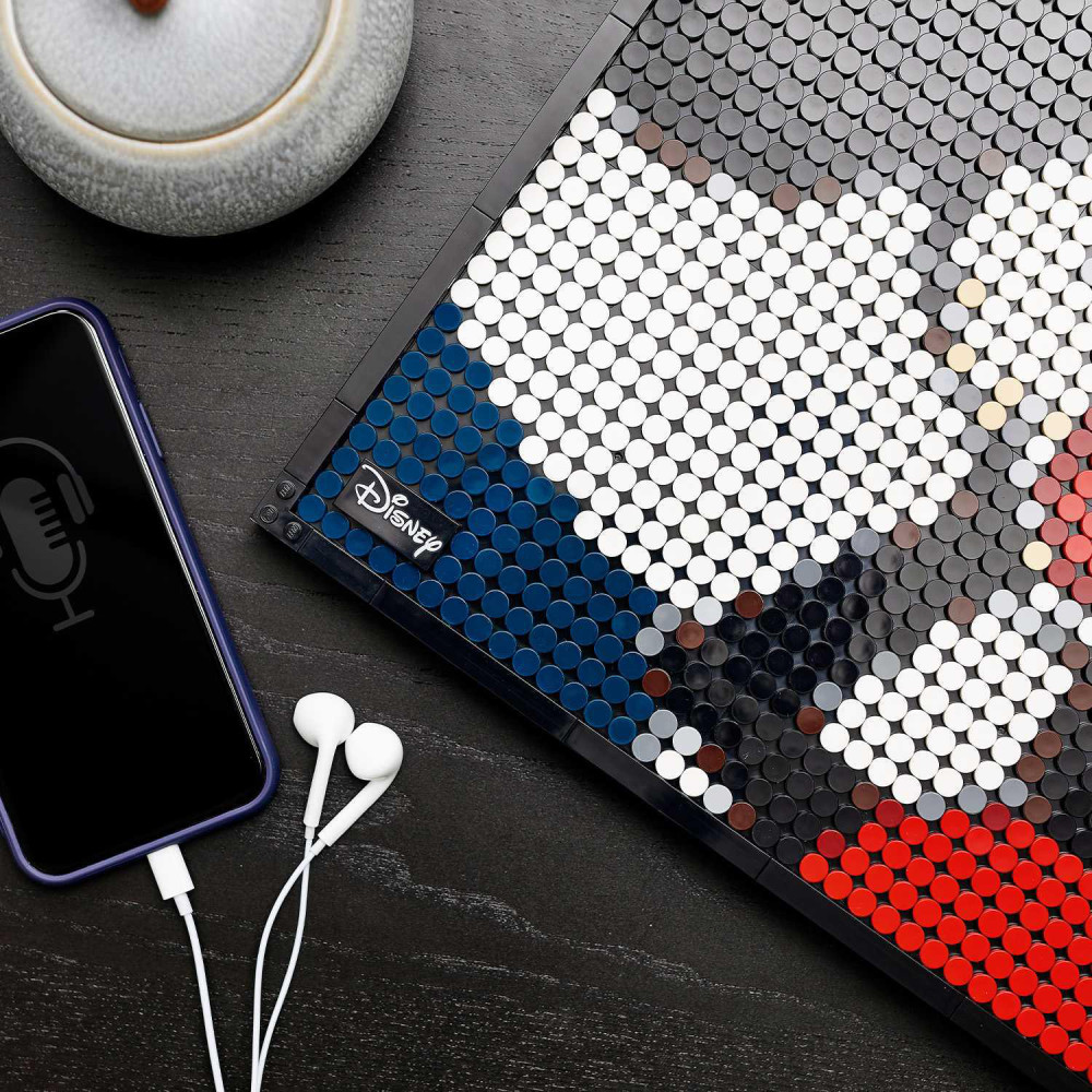 LEGO oddych pre dospelých Vráť sa do mladosti a poskladaj si mozaikový obrázok Myšiaka Mickeyho alebo Myšky Minnie s týmto 2 658-dielnym setom. Pri stavaní sa započúvaj do nahrávky, ktorá je súčasťou balenia, a zisti viac o ikonických postavičkách. Pripravený na zmenu? Obrázok prestavaj alebo nazbieraj obe súpravy a vytvor si zjednotený nástenný obrázok Myšiaka Mickeyho a Myšky Minnie.