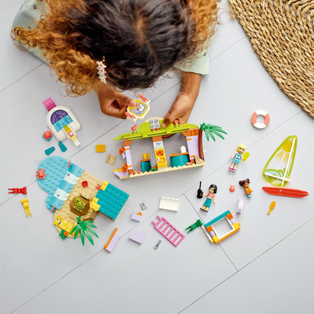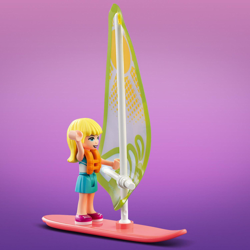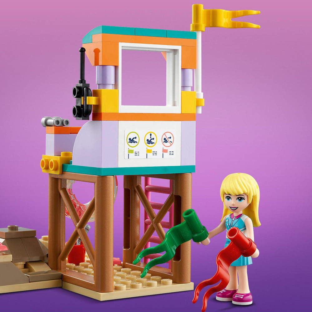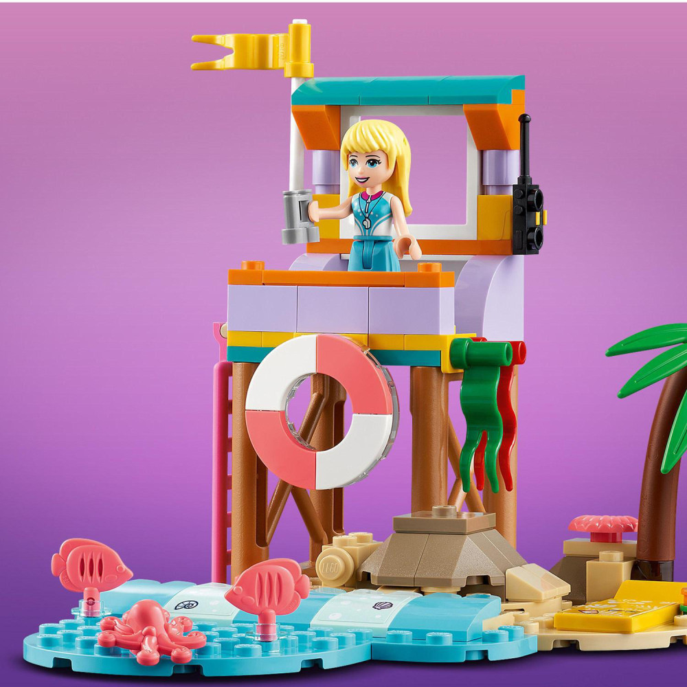 Hračky na podnietenie fantázie Deti sa môžu pridať ku Stephanie z LEGO Friends v plavčíckej veži a dávať pozor na ostatných. Môžu viesť surferskú školu, obsluhovať zákazníkov v obchode, splavovať obrovské vlny na surfe, plávať v mori s plutvami a dýchacou maskou alebo sa hrať na pláži s vedierkom a lopatkou.