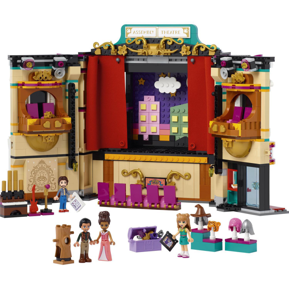 Hračky na podnietenie fantázie Za otváracou viktoriánskou fasádou sa ukrýva kompletné divadlo s orchestrom a balkónmi na sedenie. Textilné opony zakrývajú 2 kulisy – stredoveký hrad a nočnú panorámu mesta. Divadlo sa dá otáčať a nechýba ani svetelná konštrukcia či šatník, kde „vznikajú“ postavy, presne ako v skutočnom divadle! Deti majú k dispozícii aj hračkárske rekvizity na inscenovanie vlastných dramatických scén. Andrea, Ollie a Freya zo série LEGO® Friends odohrajú predstavenia pod režisérskou taktovkou profesora Adriana.