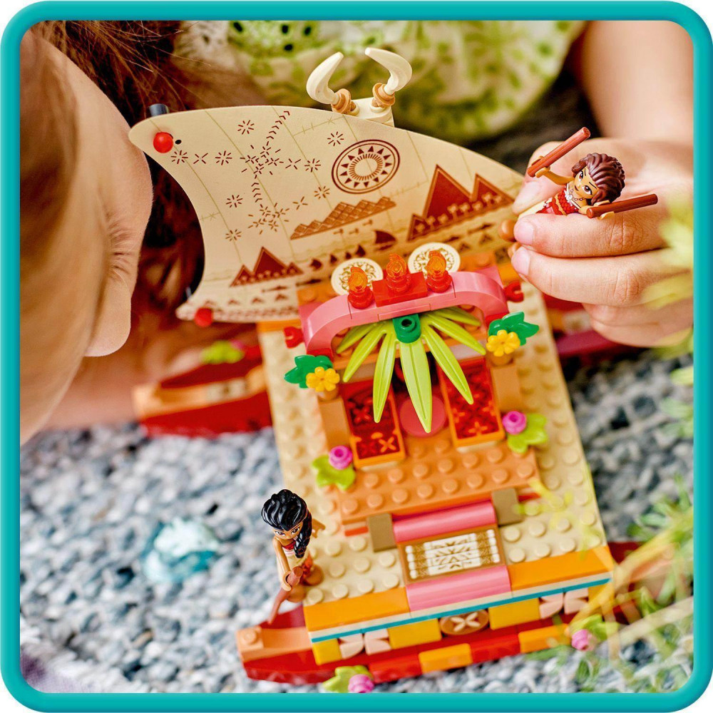 Deti vo veku od 6 rokov čaká so stavebnicou LEGO® | Disney Vaiana a jej objaviteľská loď (43210) veľké dobrodružstvo. Táto dvojitá loď má odnímateľný prístrešok, plachtu s potlačou a ... celý popis
