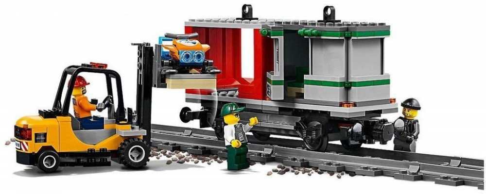 Nalož výkonný LEGO® City 60198 Nákladný vlak a doruč tovar včas! Túto štýlovú stavebnicu LEGO City s rušňom s pohonom možno ovládať diaľkovým ovládaním Bluetooth s 10 rýchlosťami. Obsahuje prístupnú kabínu rušňovodiča, vozeň so žeriavom s otočným a vysúvacím ramenom, vozeň s 2 kontajnermi, vozeň s guľatinami plus obrnené vozidlo s otváracími dverami a vysokozdvižný vozík s otváracou ochrannou klietkou a zdvíhacími vidlicami. Táto štýlová stavebnica vlaku LEGO obsahuje tiež uzavretú okrúhlu trať so 16 zaoblenými a 16 rovnými koľajnicami, výhybku s pákou plus riadiace stredisko s rebríkom, 2 zostaviteľné palety s bankovkami, zlaté tehličky, snežný skúter a 6 LEGO minifigúrok.