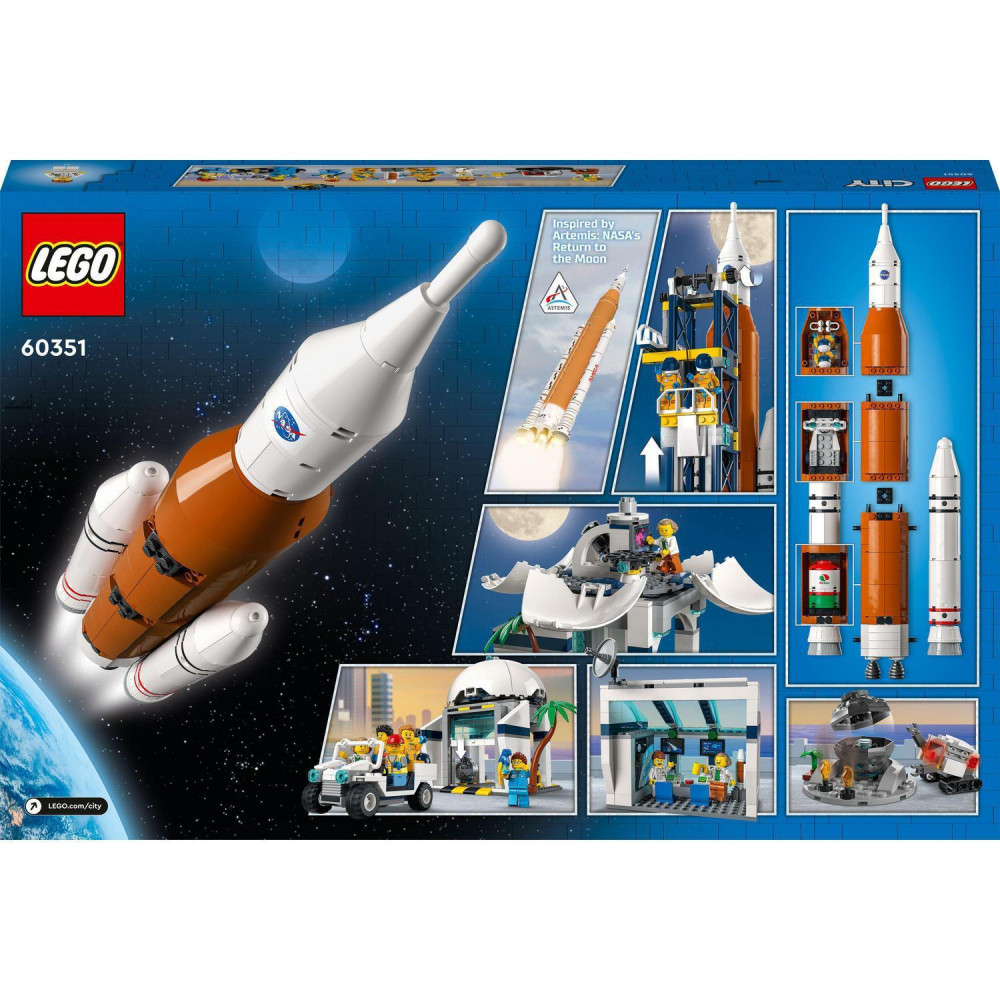 Stavebnica LEGO® City Kozmodróm (60351) je plná rôznych prvkov inšpirovaných misiami NASA vrátane obrovskej štartovacej veže, raketoplánu s priestorom pre 2 astronautov a planetárnym modulom. Nechýba ani detailné observatórium s kupolou a riadiace stredisko, ako aj servisné vozidlo, dron a 6 minifigúrok na zohrávanie zábavných scénok. Po spojení tohto modelu s inými setmi zo série Vesmír LEGO City zažijete ešte viac zábavy.