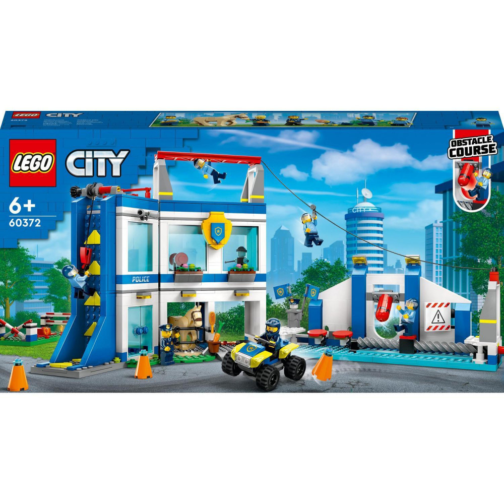 Súčasťou setu LEGO® City Policajná akadémia (60372) je modulárna policajná stanica s niekoľkými miestnosťami, vonkajšia prekážková dráha so zábavnými zariadeniami vrátane lezeckej steny, preliezacích tyčí a lana. Nechýba ani funkčná štvorkolka, 6 minifigúrok a figúrka koňa.