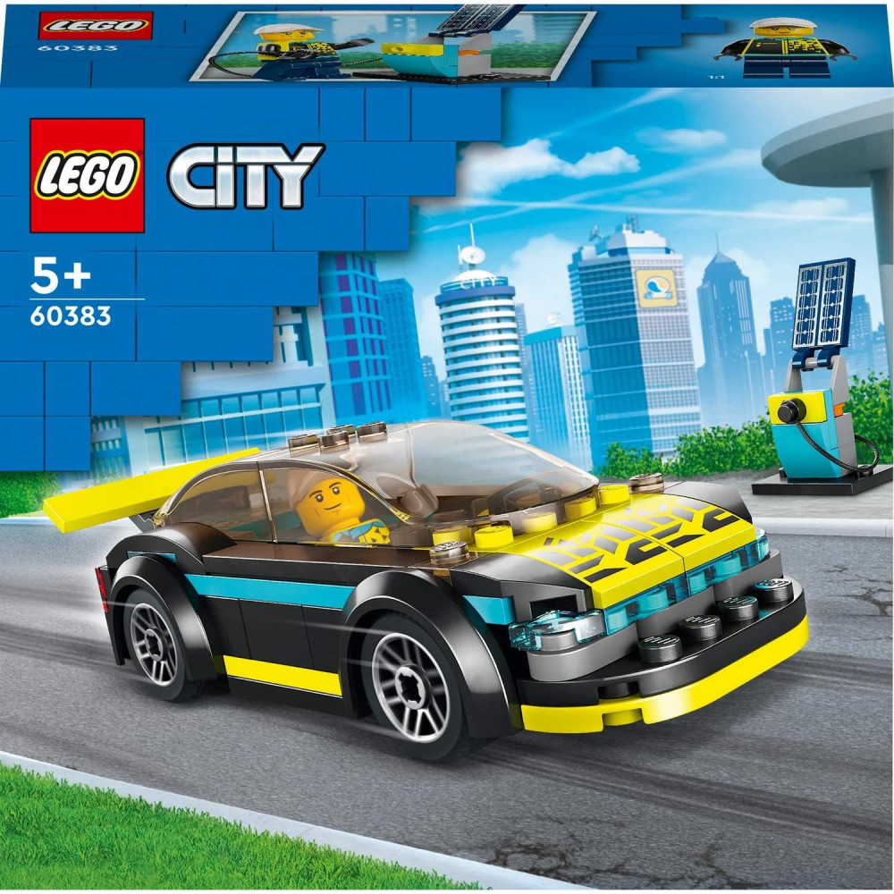 Malí pretekári si toto elektrické športové auto LEGO® City (60383) zaiste zamilujú. Auto má futuristický dizajn, neónovo-žlté detaily, štýlové kolesá a veľký zadný spojler. Súčasťou stavebnice je aj hračkárska nabíjacia stanica a minifigúrka šoféra na zábavné pretekárske hry.