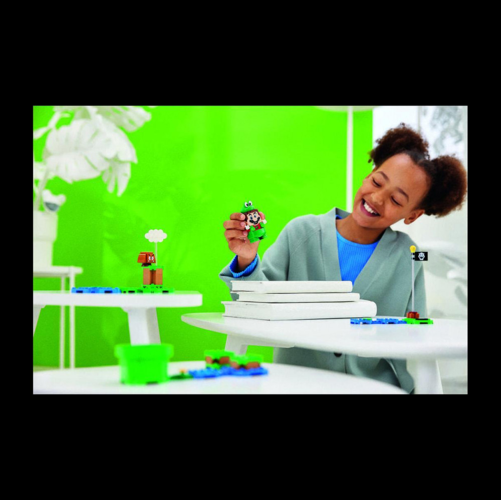 Deti si môžu obohatiť levely zo sveta LEGO® Super Maria o trochu skákania a čľapotania s týmto oblečkom Žabiak Mario (71392). Nájdu v ňom interaktívny kostým žabiaka pre LEGO® Maria (figúrka nie je súčasťou balenia), s ktorým môže hráč vyskakovať po bonusové digitálne mince a po každom dopade sa ozve čľapot. Táto stavebnica je ideálnym darčekom pre malých trendových majiteľov LEGO Super Mario štartovacieho setu 71360 s figúrkou LEGO Maria alebo setu 71387 s figúrkou LEGO® Luigiho.
