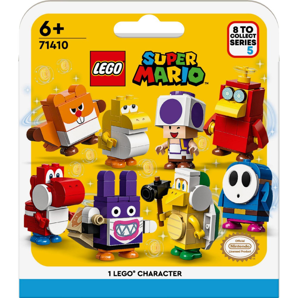 S 5. sériou zberateľských akčných kociek (71410) môžu deti povzniesť svoje dobrodružstvá LEGO® Super Mario™ ešte o kúsok ďalej. Každý balíček obsahuje náhodnú zostaviteľnú postavičku s akčným prvkom. Nechýba ani menší model, vďaka ktorému si možno figúrku vystaviť alebo ju zapojiť do herných levelov. Séria dokopy obsahuje 8 zberateľských postáv LEGO Super Mario. Túto originálnu partičku tvorí Nabbit, fialový Toad, Hammer Bro, Waddlewing, Toady, malý Yoshi, červený Yoshi a modrý Shy Guy. Všetky postavy je možné zapojiť do hier so štartovacím setom (71360, 71387 alebo 71403), ktorý je potrebný na plnohodnotný interaktívny herný zážitok.