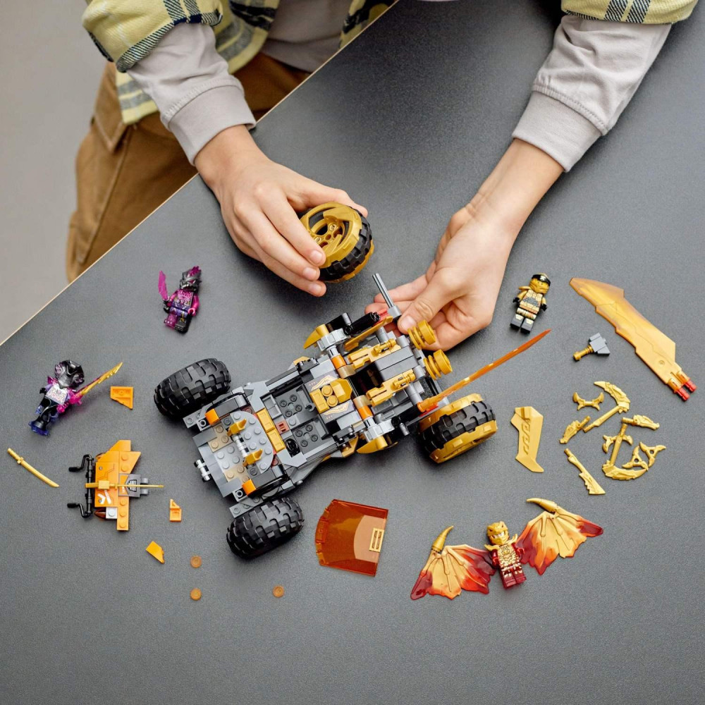 Stavebnica LEGO® NINJAGO® Coleovo dračie vozidlo (71769) deťom od 8 rokov umožňuje zinscenovať si zábavné scény zo seriálu NINJAGO: Crystallized. Nindža vozidlo má pôsobivé zlaté bleskové čepele, ktoré možno zatlačiť vpred do režimu dračieho útoku, 2 vystreľovače projektilov, 4 veľké pneumatiky a miesto pre šoféra a pasažiera, kam možno posadiť minifigúrky.