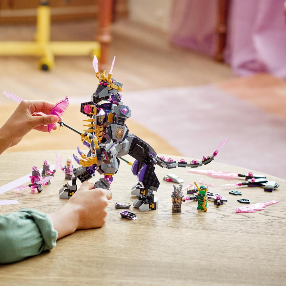 Deti sa môžu so stavebnicou Krištáľový kráľ (71772) zahrať na napínavé scény zo seriálu NINJAGO®: Crystallized. Krištáľový kráľ je skvelým darčekom pre deti od 9 rokov a má podobu kentaura so 4 nohami, 2 rukami, párom krídel, veľkým mečom a plošinou na hrudi, na ktorú možno pripojiť minifigúrku.