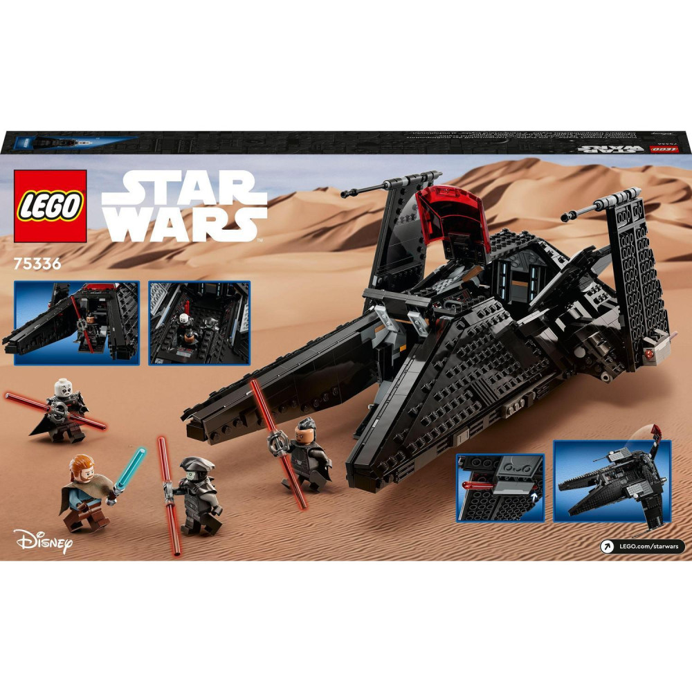 So stavebnicou LEGO® Star Wars™ Inkvizítorská transportná loď Scythe (75336) môžu deti vyraziť na lov Jediov zo seriálu Star Wars: Obi-Wan Kenobi. Táto zostaviteľná hviezdna loď má nastaviteľné krídla na režim letu a pristávania, 2 pružinové vystreľovače a vstupnú rampu. Aj kabínu môžete ľahko otvoriť a nahliadnuť tak do detailného interiéru lode, kde nájdete 3 sedadlá pre minifigúrky a úložné spony pre svetelné meče. Súčasťou sú aj minifigúrky LEGO Bena Kenobiho, Veľkoinkvizítora, Revy (Tretej sestry) a Piateho brata, vyzbrojené svetelnými mečmi, aby ste si mohli užiť kreatívne hry na postavy.