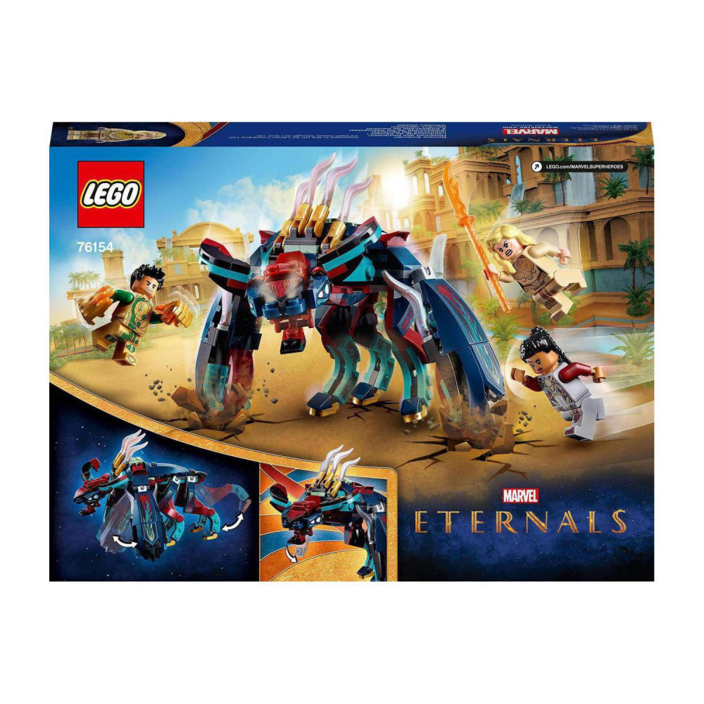 Nabité akciami z marvelovského filmu Eternals (2021) Keď 6-nohý Deviant s hryzúcou tlamou zaútočí na 3 Eternalov – Thenu, Gilgamesha a Makkari, musia im prísť na pomoc deti so všetkými svojimi superhrdinskými schopnosťami. Deti si môžu vymýšľať, ako sa dajú zapojiť do akcie superschopnosti 3 superhrdinov: Thenina schopnosť privolať zbrane na súboj tvárou v tvár, Gilgameshova výnimočná sila a Makkarina fenomenálna rýchlosť. Navyše, ak kupujete stavebnicu pre fanúšika minifigúrok, minifigúrka Gilgamesha sa nachádza iba v tejto jedinej úžasnej LEGO stavebnici!