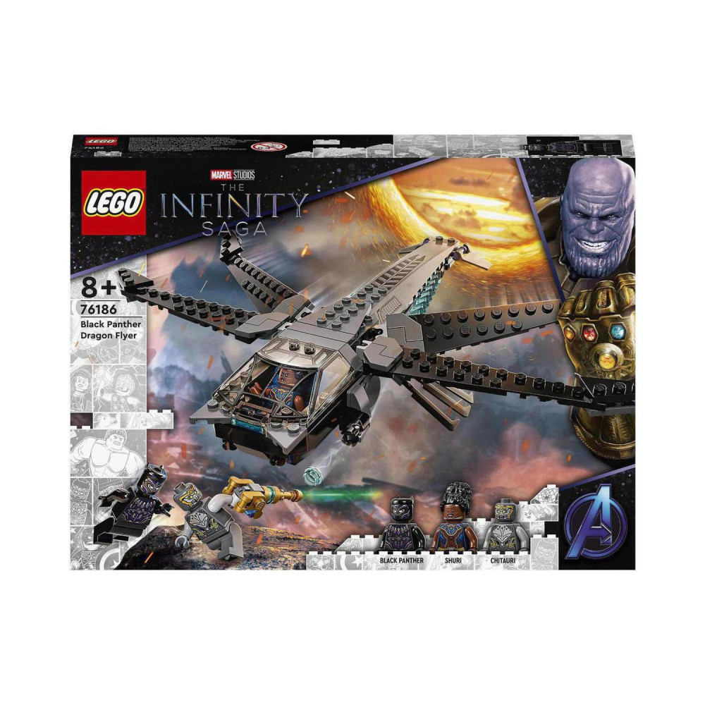 Malí superhrdinovia si môžu s touto stavebnicou LEGO® Marvel: Black Panther a dračí letec (76186) zinscenovať akčnú bitku vo vzduchu z filmu Avengers: Endgame – ide o jeden z najikonickejších lietajúcich strojov z dielne Marvelu.
