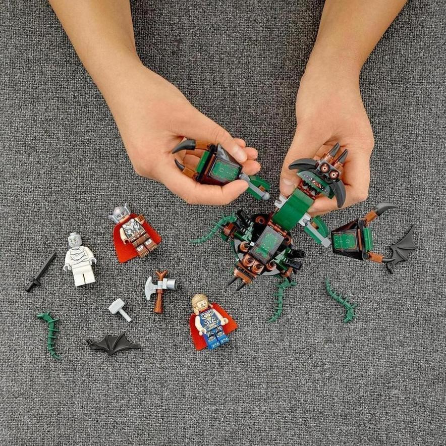 Stavebnica s príšerou pre fanúšikov Thora, ktorú musí mať každý Deti môžu zvládnuť tú najhoršiu nočnú moru všetkých pomocou tejto superhrdinskej stavebnice s mega príšerou. Táto zostaviteľná hračka obsahuje 3 obľúbené minifigúrky: Gorra, ktorý privoláva k životu Tieňovú príšeru, Thora, ktorý máva elektrickou sekerou Stormbreaker; a Mocného Thora, ktorý nesie kladivo Mjölnir. Týčiaca sa príšera má kĺbové končatiny a drápy na maximalizovanie možnosti na hranie a vystavovanie. Pre extra stavebnú zábavu, bezplatná aplikácia LEGO Building Instructions obsahuje intuitívne digitálne nástroje na priblíženie, otáčanie a zobrazovanie.