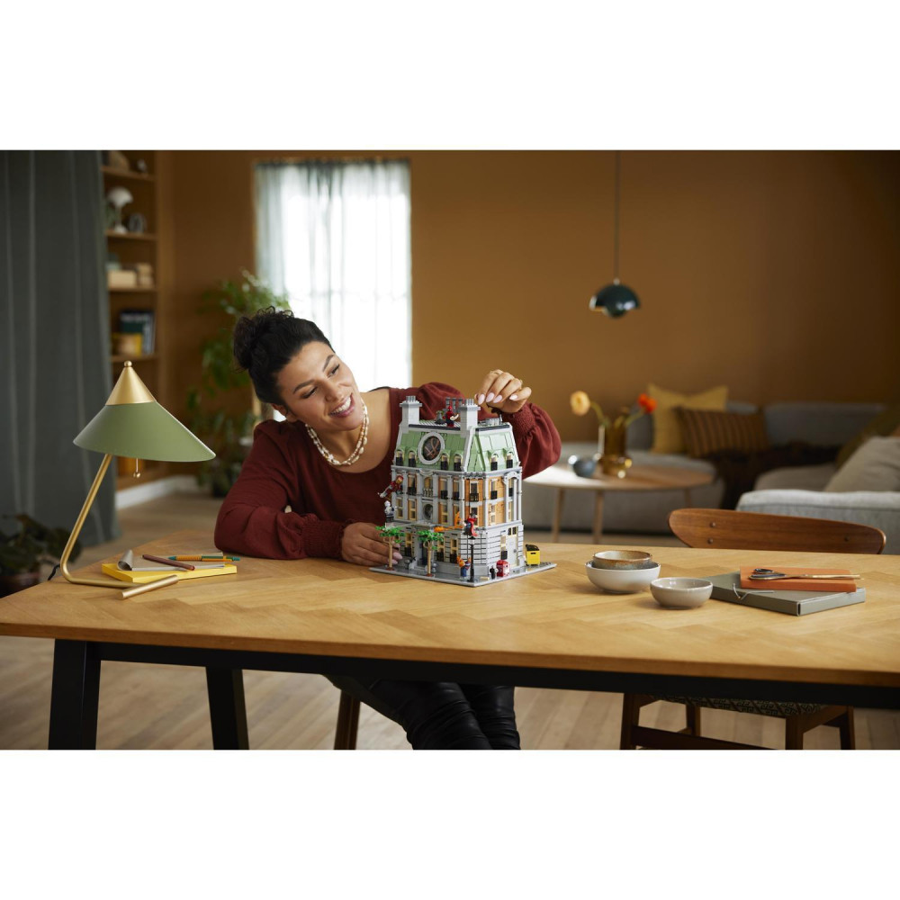 Trojposchodová pocta Doktorovi Strangeovi Táto replika známeho sídla Doktora Strangea Sanctum Sanctorum pozostáva z 2 708-dielikov a zobrazuje klasické scény z filmov Avengers: Infinity War a Doctor Strange v mnohovesmíre šialenstva od štúdia Marvel. Na vrchnom poschodí nájdete mýtické zbierky, v strednej časti knižnicu a na prízemí množstvo známych prvkov. Súčasťou stavebnice je 9 ikonických minifigúrok – Doctor Strange, Wong, Iron Man, Spider-Man, Ebony Maw, Majster Mordo, Majster Mordo, Zlovestný Strange, Mŕtvy Strange a Scarlet Witch – ako aj celý rad autentických doplnkov a niekoľko prispôsobiteľných prvkov, vďaka ktorým sa stavitelia môžu zabávať ešte dlho po dokončení svojej stavby.