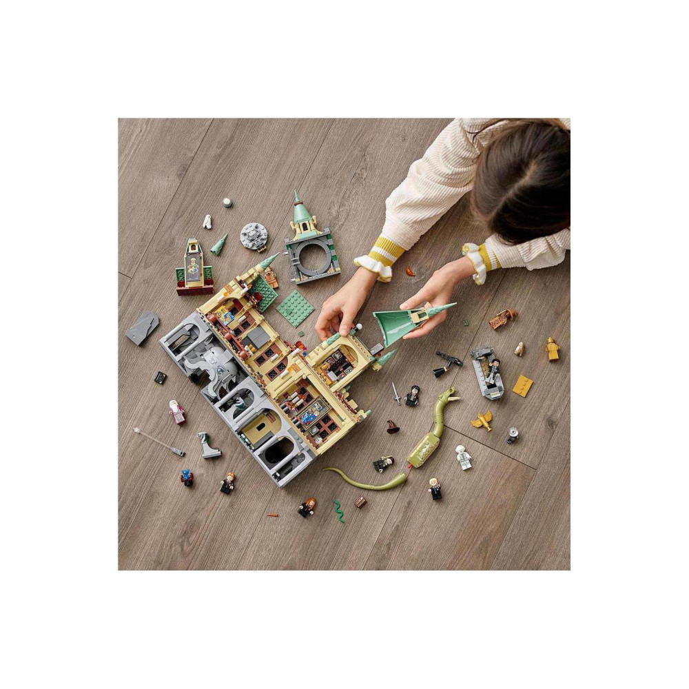 Autentické filmové detaily V tejto univerzálnej stavebnici nájdete známe miestnosti, rôzne očarujúce prvky a známe postavy z filmov o Harrym Potterovi. Veľká sieň obsahuje 2 dlhé stoly, Dumbledorov stôl so zlatou sovou a autentické doplnky, ako je napríklad Triediaci klobúk. Podobne ako jej predloha z filmov, aj táto tajomná komnata je vybavená ikonickým kruhovým vchodom a veľkou sochou s ústami, ktoré sa otvoria a odhalia tak chodbu, ktorou sa do komnaty priplazí bazilisk. Nájdete tu 10 inšpiratívnych minifigúrok na hranie a vystavovanie: Harry Potter, Ginny Weasleyovú, Toma Riddla, Colina Creeveyho, Justina Finch-Fletchleyho, Lunu Lovegoodovú, Gilderoya Lockharta, Albusa Dumbledora, profesorku Sinistrovú a Takmer bezhlavého Nicka. Nechýbajú ani zberateľské kúsky: exkluzívna zlatá výročná minifigúrka Voldemorta a 6 náhodných kartičiek s podobizňami čarodejníkov.