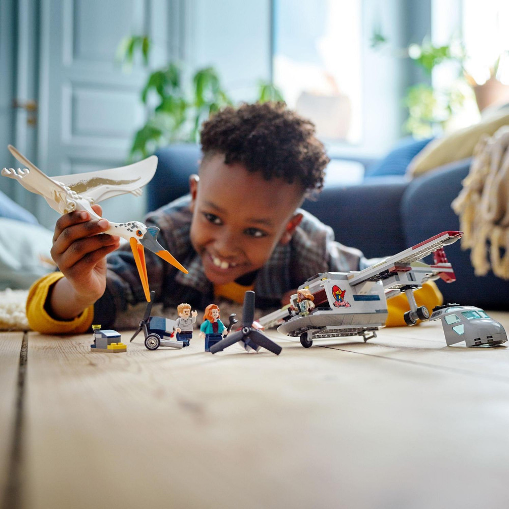 Zažite vzrušujúce akčné momenty vo vzduchu ako vystrihnuté z filmu Jurský svet Nadvláda s touto stavebnicou Quetzalcoatlus – prepadnutie lietadla (76947) pre malých milovníkov dinosaurov vo veku od 7 rokov. Súčasťou je lietadlo s miestom pre 3 minifigúrky v kabíne, rotujúcimi vrtuľami a otváracím nákladovým priestorom, ale aj s motormi navrhnutými tak, aby sa po útoku pohyblivej figúrky Quetzalcoatla odtrhli (dajú sa potom znova ľahko pripevniť).