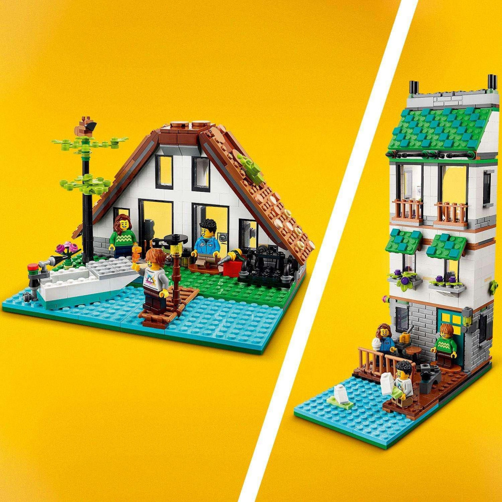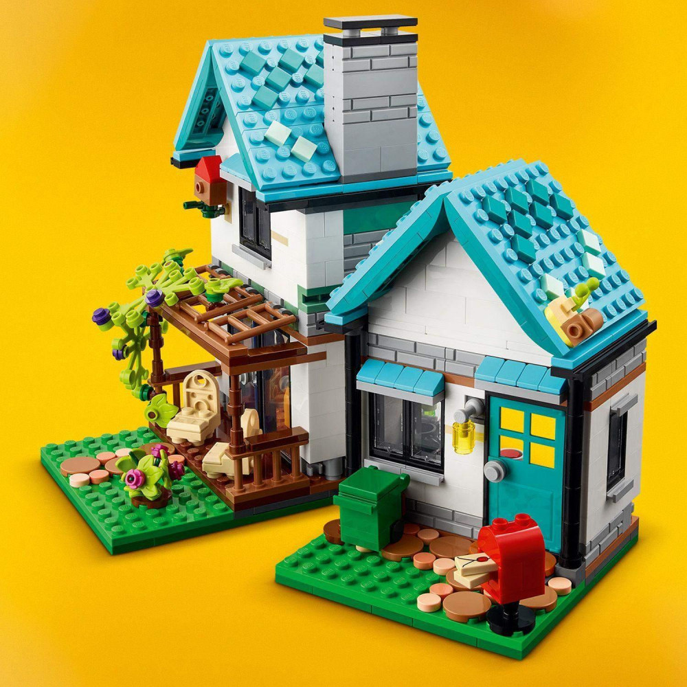 Vďaka tomuto pôsobivému útulnému domčeku (31139) zo série LEGO® Creator 3 v 1 sa deti od 8 rokov budú z radosťou hrať na príbehy plné zábavy. Stavebnica obsahuje rodinný domček so 4 izbami: kuchyňou, obývačkou, hlavnou spálňou, detskou izbou a záhradnou terasou. Domček sa v strede rozkladá, aby tak deti mali viac možností na hranie.