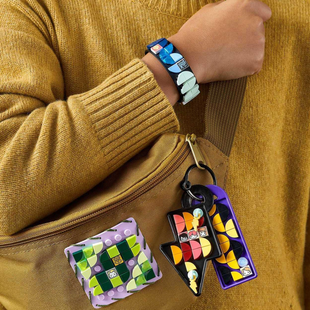 Hľadáte zábavnú sadu pre fanúšikov Harryho Pottera a deti od 8 rokov? LEGO® DOTS Sada doplnkov – Rokfort (41808) predstavuje ideálny darček pre túto ich záľubu! Súčasťou sú 4 rôzne podložky DOTS vrátane dvojradového náramku, ozdobnej nášivky, ozdôb na tašku v tvare obdĺžnika a jazvy v tvare blesku, kľúčenky a kľúča. Jednotlivé dieliky majú rôzne tvary a farby a nájdete medzi nimi prívesky, držiaky na prívesky a 10 náhodne vyzdobených dielikov (zo 16 možných dizajnov). Deti môžu vytvárať nekonečné dizajny a ukázať, ako majú rady Harryho Pottera alebo ktorá fakulta je ich najobľúbenejšia – skrátka sa môžu slobodne vyjadriť.
