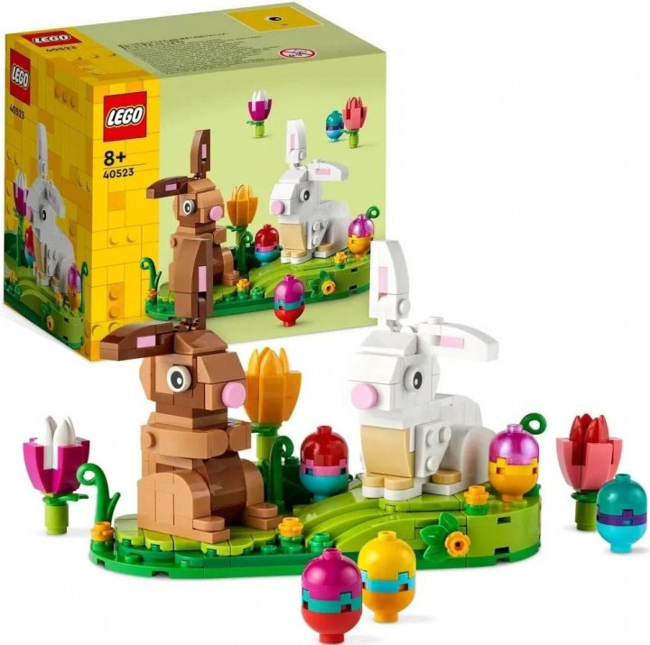 Oslávte veľkonočné sviatky s touto roztomilou stavebnicou LEGO® Scénka s veľkonočnými zajačikmi (40523). Obsahuje jedného bieleho a jedného svetlohnedého zajačika sediacich spolu na jarnej lúke. Súčasťou scénky, ktorú si môžete vystaviť kdekoľvek podľa svojej chuti, je 5 farebných veľkonočných vajíčok a 3 tulipány. Jedno vajíčko zahŕňa aj novinku na rok 2022 – transparentný ružový opalizujúci prvok, ktorý je „čerešničkou na torte“ pre fanúšikov LEGO.