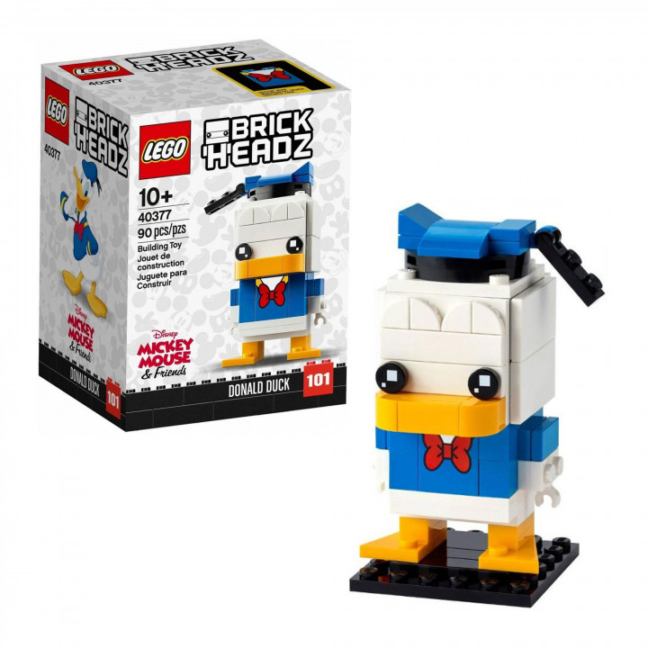 Fanúšikovia súprav LEGO® BrickHeadz™ a klasických disneyovských postáv si tento model Káčera Donalda (40377) určite zamilujú. Len sa pozrite na Donaldovu rozkošnú námornícku košeľu, čapicu a motýlika a na jeho oranžové nohy a zobák. Súčasťou balenia so stavebnicou tohto úžasného káčera je aj podložka na stavanie, takže ho možno ľahko vystaviť, či už samého alebo s inými klasickými modelmi zo série BrickHeadz. Zberatelia stavebníc LEGO BrickHeadz taktiež môžu kombinovať prvky z rôznych modelov aužiť si tak zábavu pri tvorení bláznivých hybridných postáv.