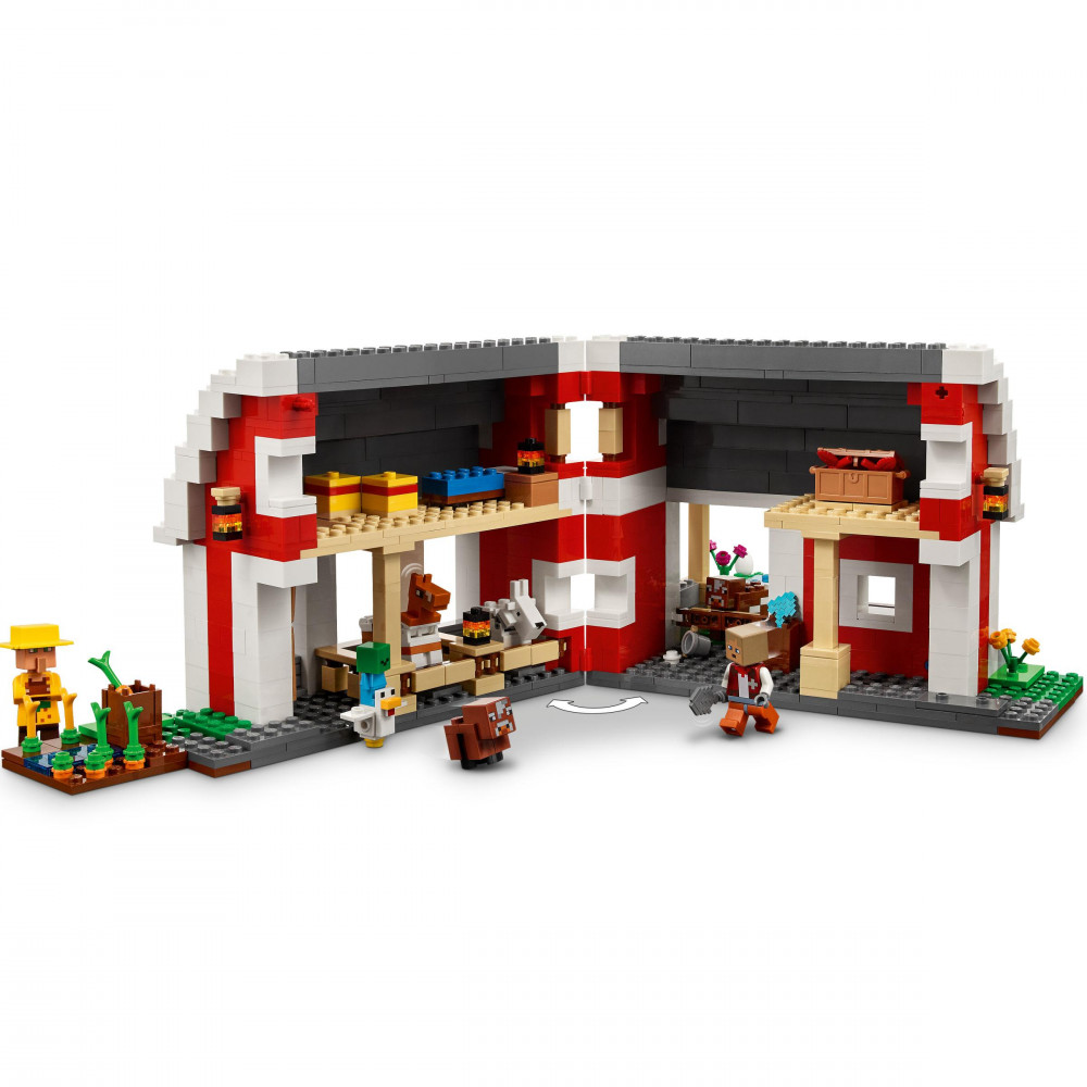 Pred stodolou si môžete vypestovať zeleninu, napríklad zemiaky, ktoré otočením gombíka vyskočia spod zeme. Samozrejme, postarať sa treba aj o zvieratká: kravy, koňa, kozu a kuru. Keď si však malé zombie kuru osedlá, hráči musia rančerovi pomôcť zastaviť ho, skôr než napácha škody! Stodola má pánty, takže si ju deti ľahko otvoria a zahrajú sa aj vnútri. Nájdu v nej spálňu, stajne pre koňa a kozu, pelešteky pre zvieratá a kufrík s náradím. Keď sa deň plný dobrodružstiev skončí, táto pôsobivá budova krásne vynikne vystavená v izbe každého hráča Minecraftu.