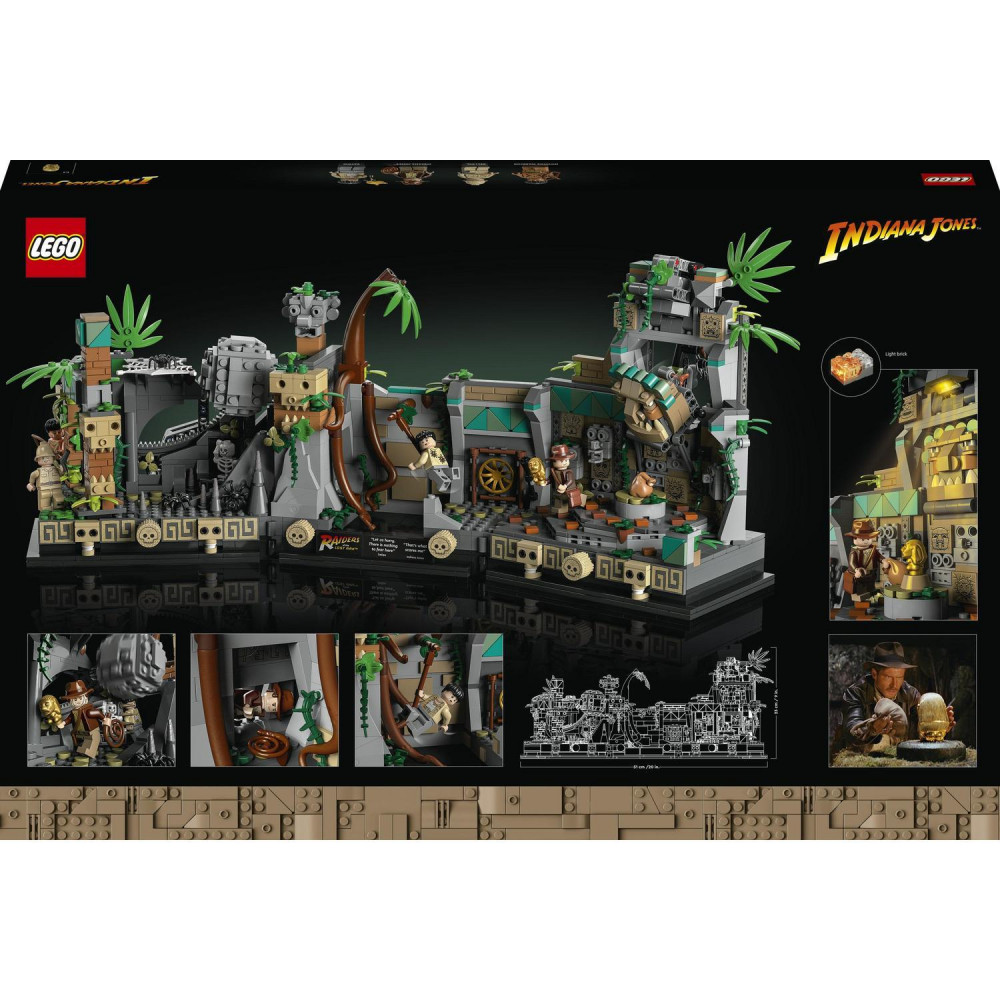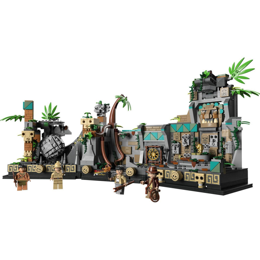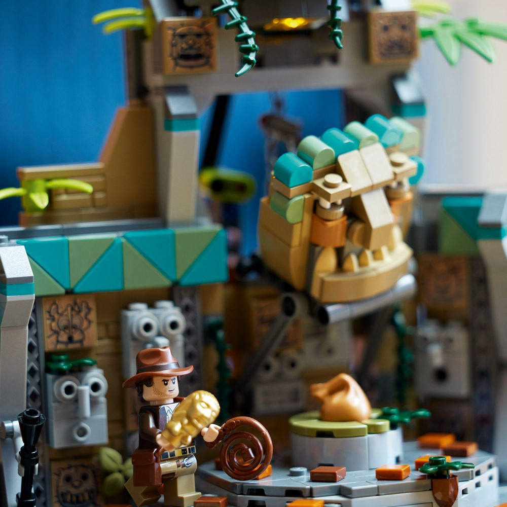 Interaktívna scéna z filmu s Indianom Jonesom Tento model LEGO Indiana Jones obsahuje 4 minifigúrky: Indianu Jonesa, Satipa, Belloqa a bojovníka z kmeňa Hovitov, navyšesa v ňom skrýva aj mnoho nostalgie a interaktívnych funkcií. Stavebnica obsahuje podstavec so 4 gombíkmi, ktorými môžete otáčať, aby ste ovládali funkcie – spustíte a rozsvietite modlu, zrúti sa stena, Indiana Jones sa prehupne cez jaskyňu, spustia sa padacie dvere alebo Indyho začne prenasledovať obrovský balvan.