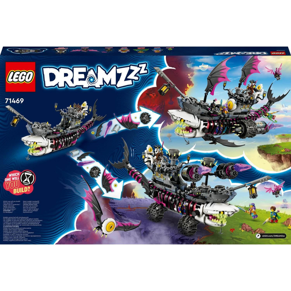 Deti od 10 rokov sa môžu ponoriť do Sveta snov s touto stavebnicou LEGO® DREAMZzz™ Žraločia loď z nočných môr (71469). Nočný lovec sa zmocnil Izzinho obľúbeného plyšáka a spojil ho s pirátskou loďou, čím vytvoril jedno smrtiace monštruózne vozidlo, ktoré si teraz deti môžu postaviť. 1 vozidlo, 2 možnosti stavania Deti si môžu vybrať z 2 spôsobov na zostavenie vozidla – v režime lode alebo v režime tanku. V režime lode do modelu pridajú výkonné motory a plachty, zatiaľ čo v režime tanku zasaparádne doplnky a lietajúce oči. Tieto 2 verzie podporia detskú kreativitu a doprajú im dvakrát takú dlhú hru. Parádne prvky Žraločia loď je plná funkcií, ktoré si deti okamžite obľúbia. Jej čeľusť môžu otvoriť a umiestniť do nej minifigúrku, stlačením tlačidla zasa objavia skrytú truhlicu s pokladom, zadnú kabínu môžu odstrániť a mnoho ďalšieho. Model je takisto vybavený rotujúcimi vežičkami na oboch stranách, ktoré dokážu strieľať, a v jej strede sa nachádza klietka a padacie dvere.